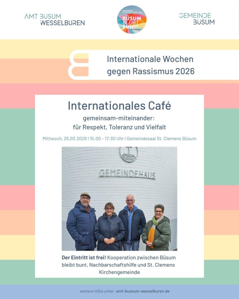 Büsum bleibt bunt und sein Cafe International, Nachbarschaftshilfe e.V. und die ev. Gemeinde veranstalten